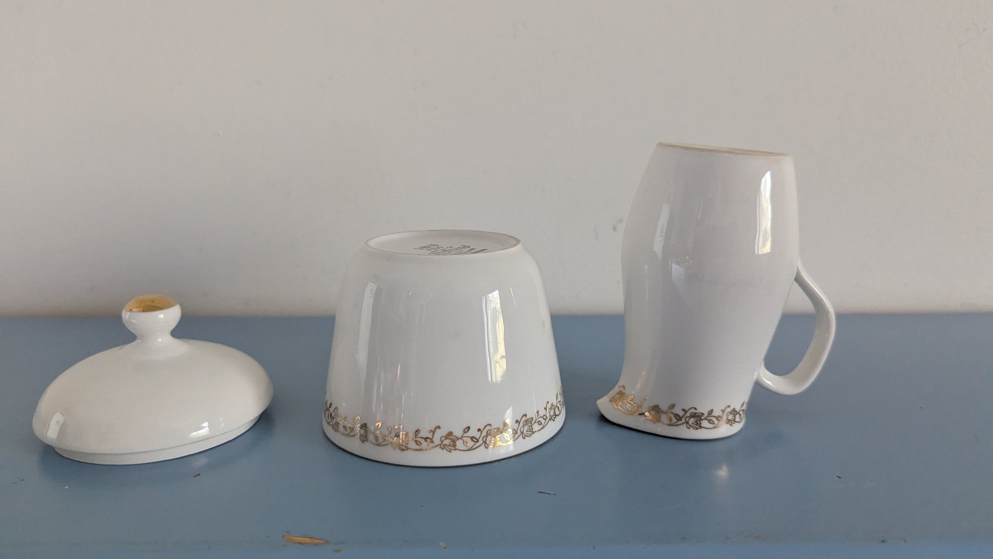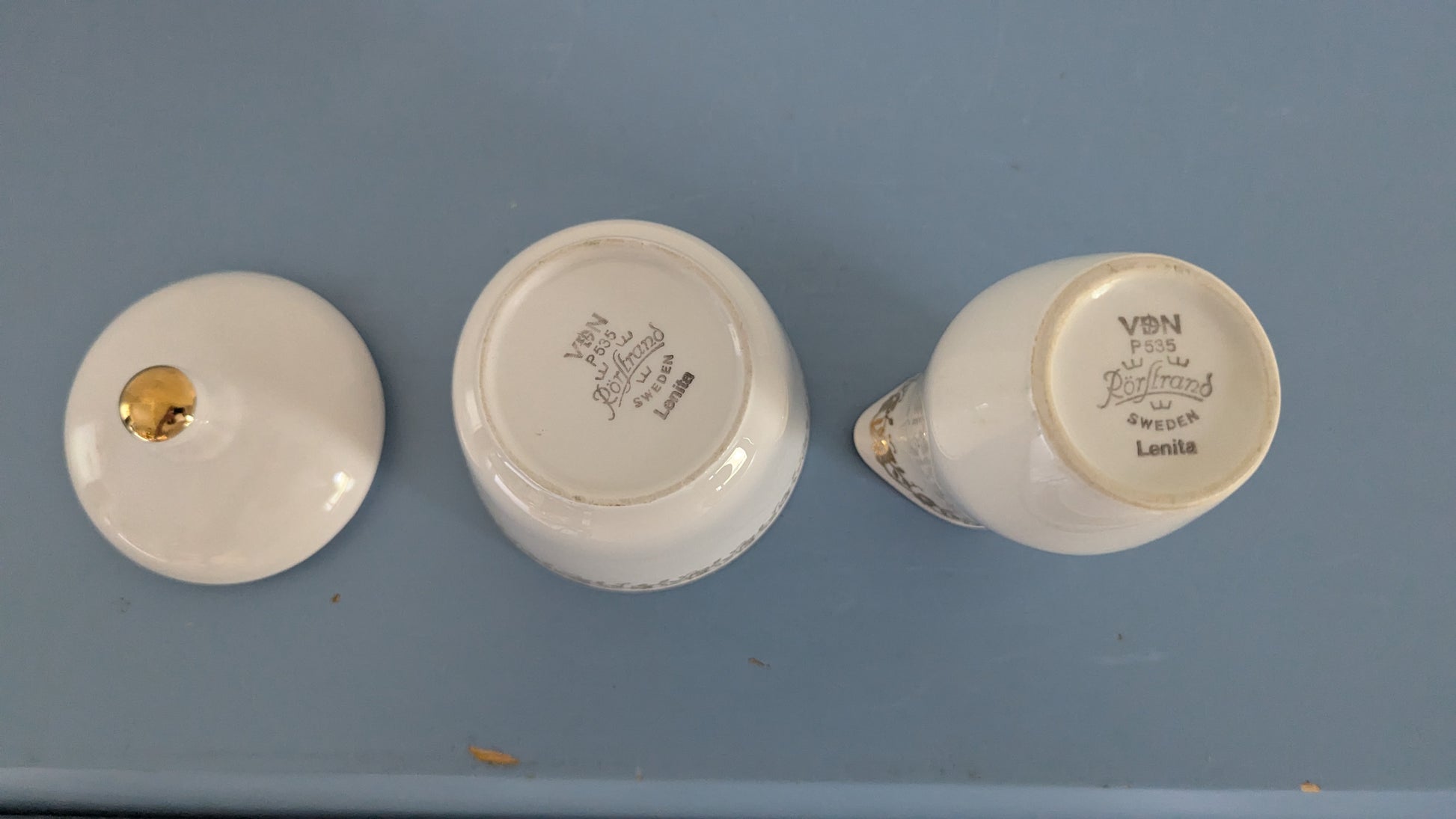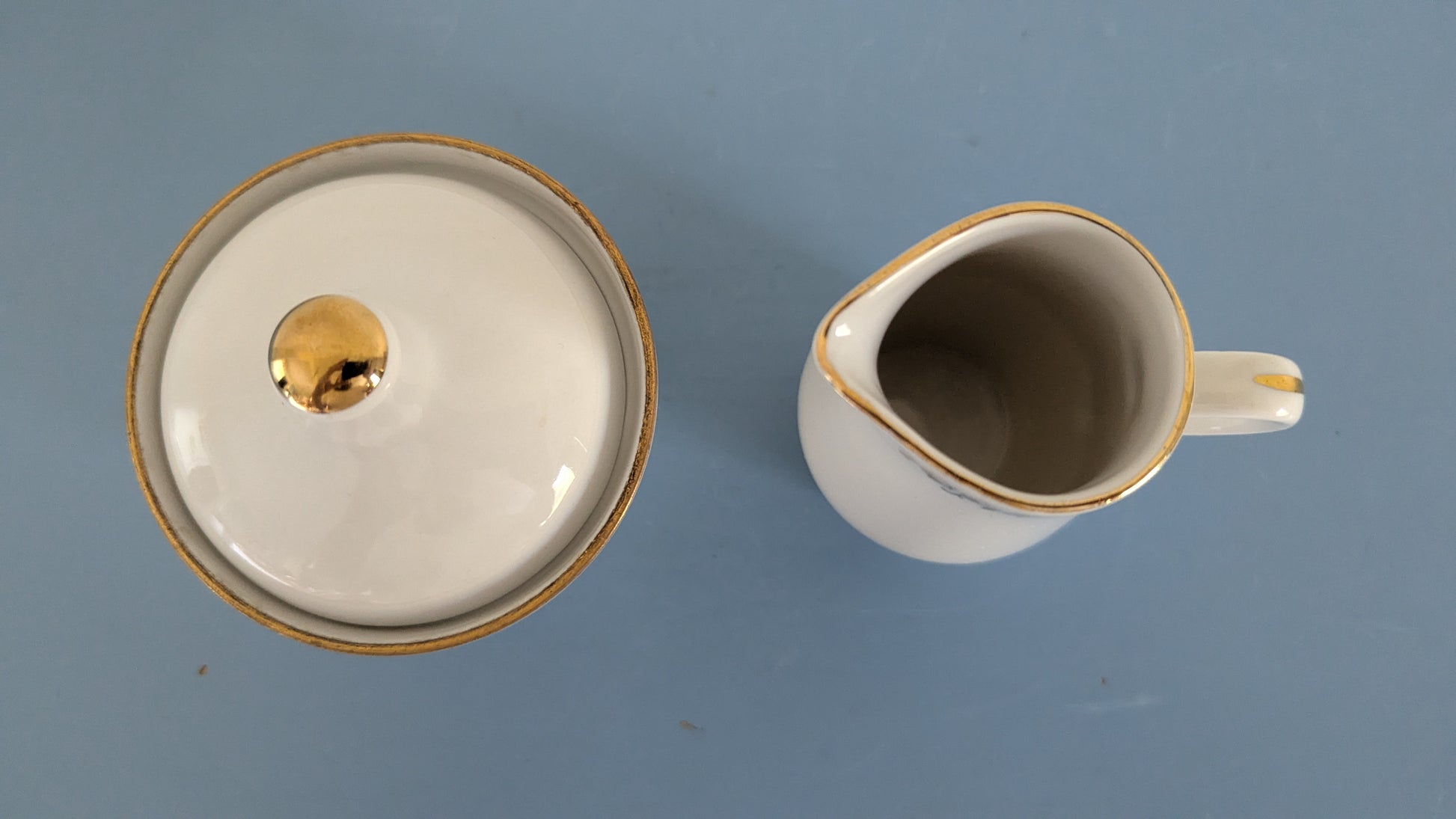 Ei iskemiä, halkeamia tai naarmuja. Koriste ja kultaus erinomaisessa kunnossa.