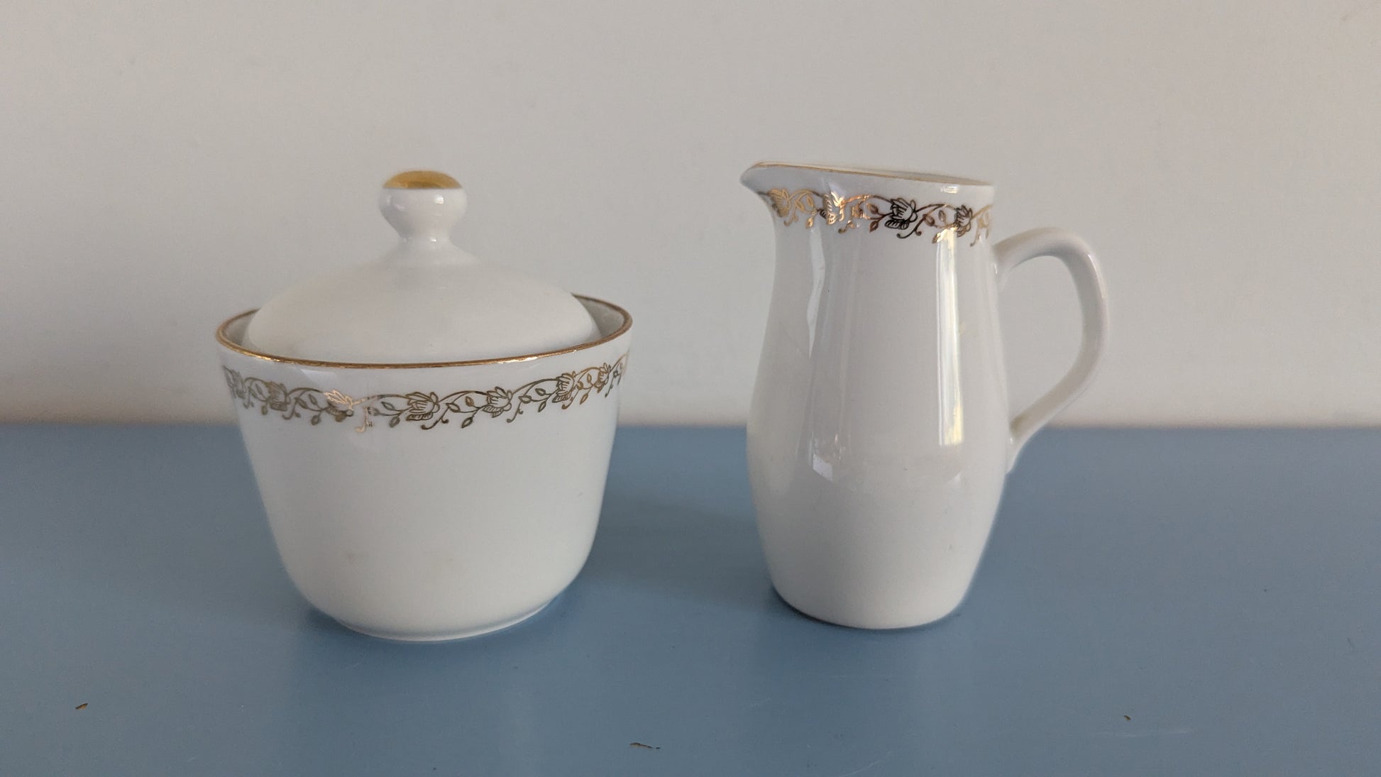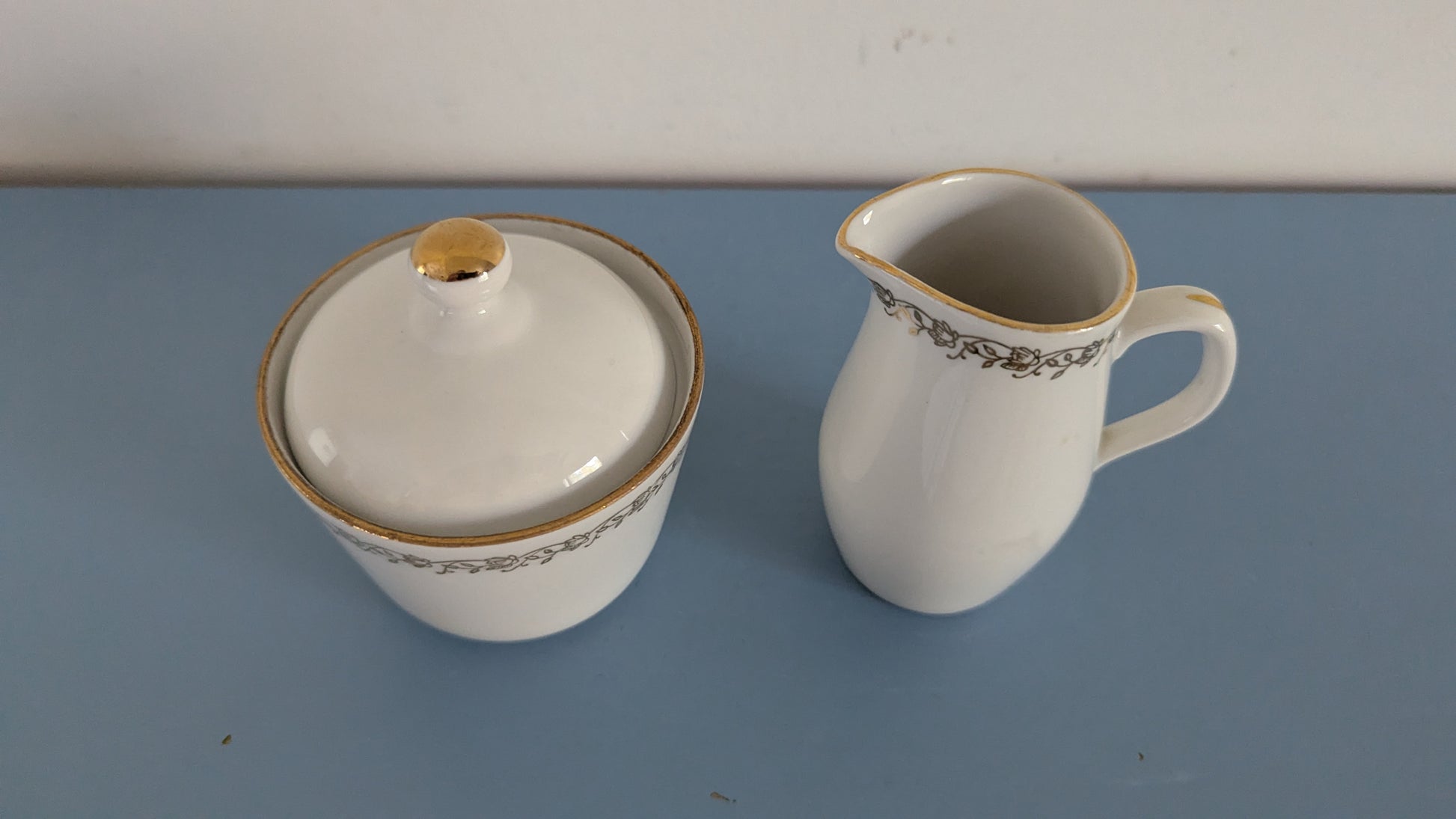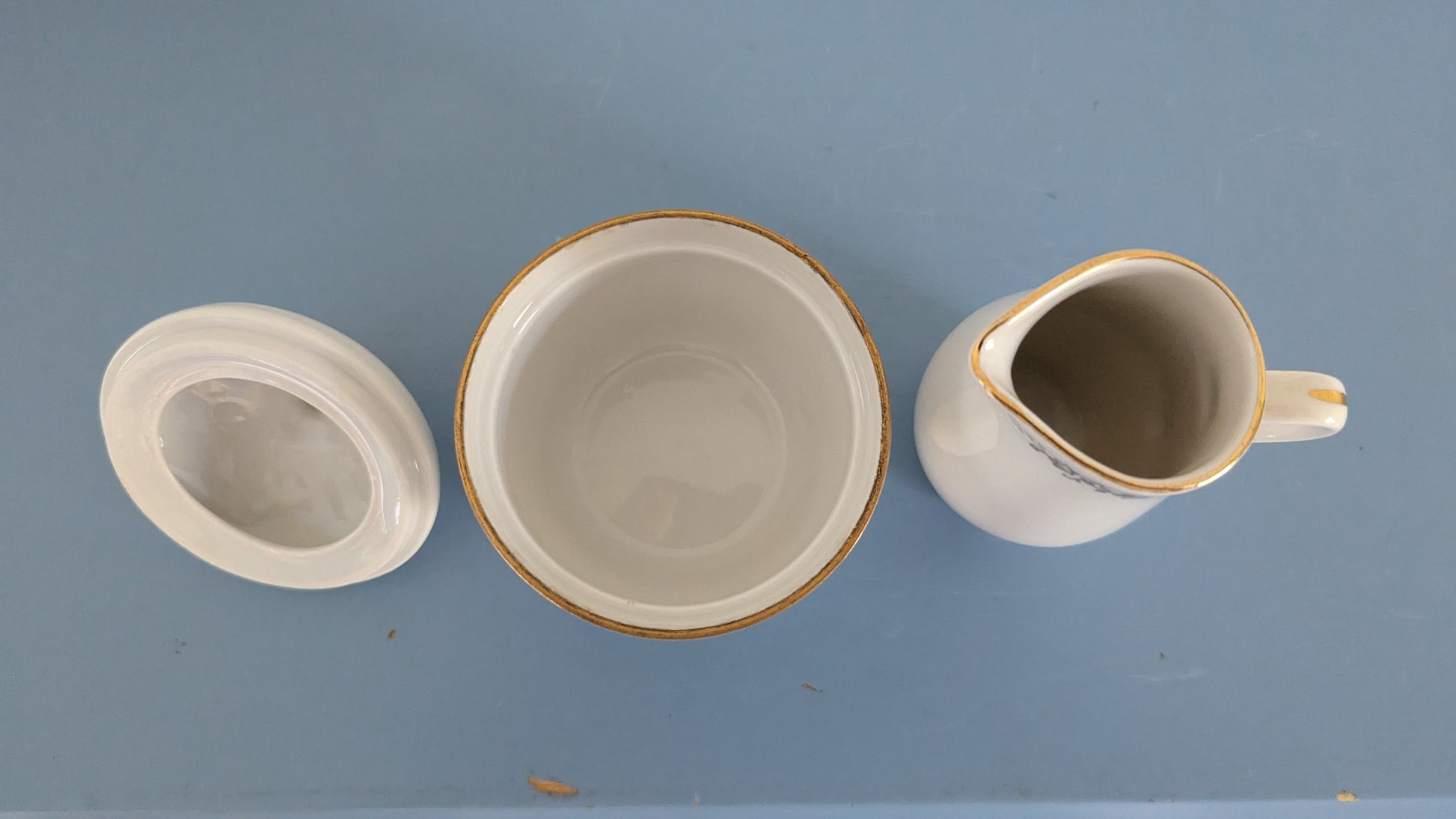 Ei iskemiä, halkeamia tai naarmuja. Koriste ja kultaus erinomaisessa kunnossa.