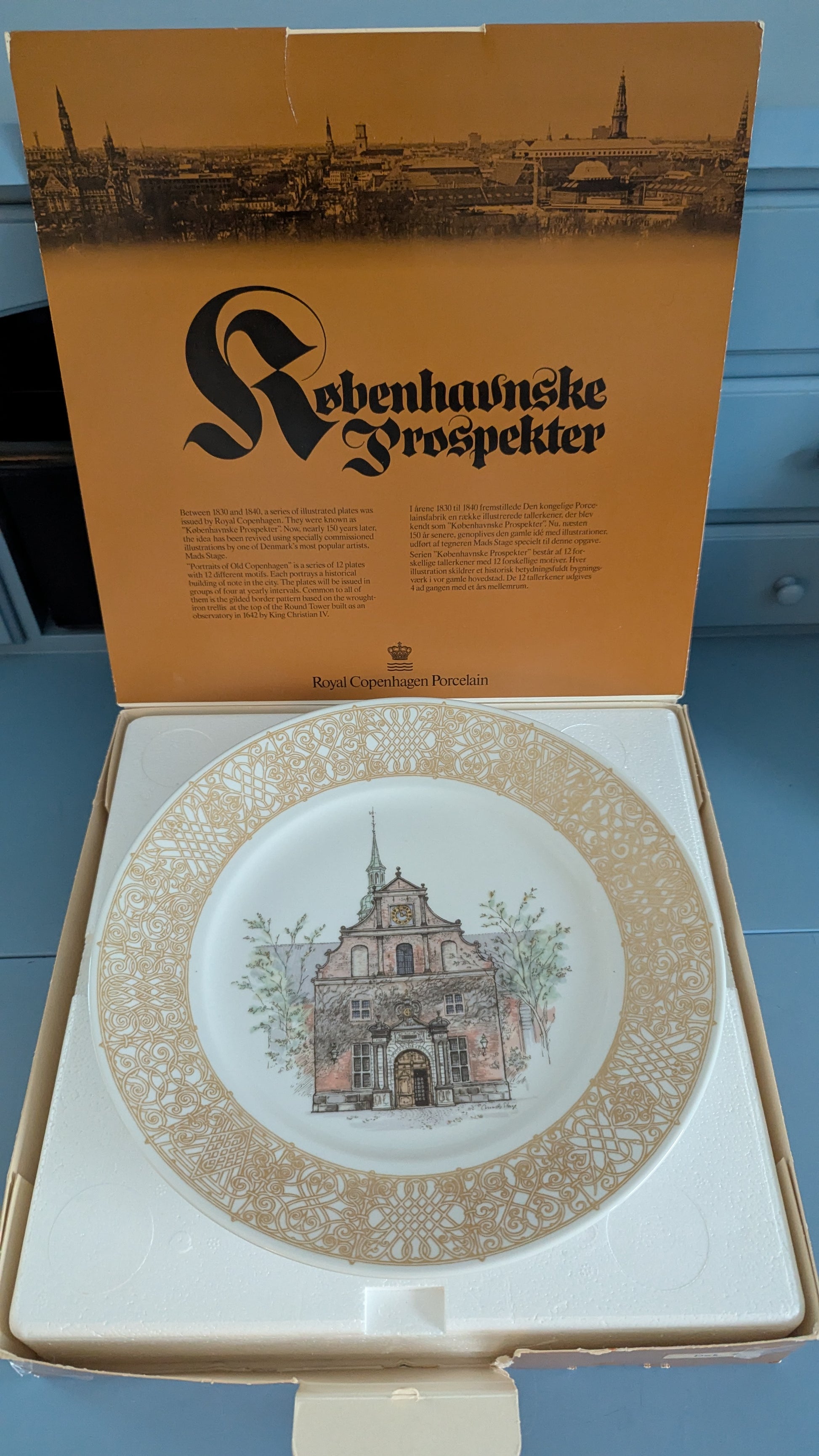 "Vuonna 1830–1840 Royal Copenhagen julkaisi sarjan kuvitettuja lautasia, jotka tunnettiin nimellä “Københavnske Prospekter”. Nyt, lähes 150 vuotta myöhemmin, idea on herätetty uudelleen erityisesti tilatuilla kuvituksilla, jotka on tehnyt yksi Tanskan suosituimmista taiteilijoista, Mads Stage.