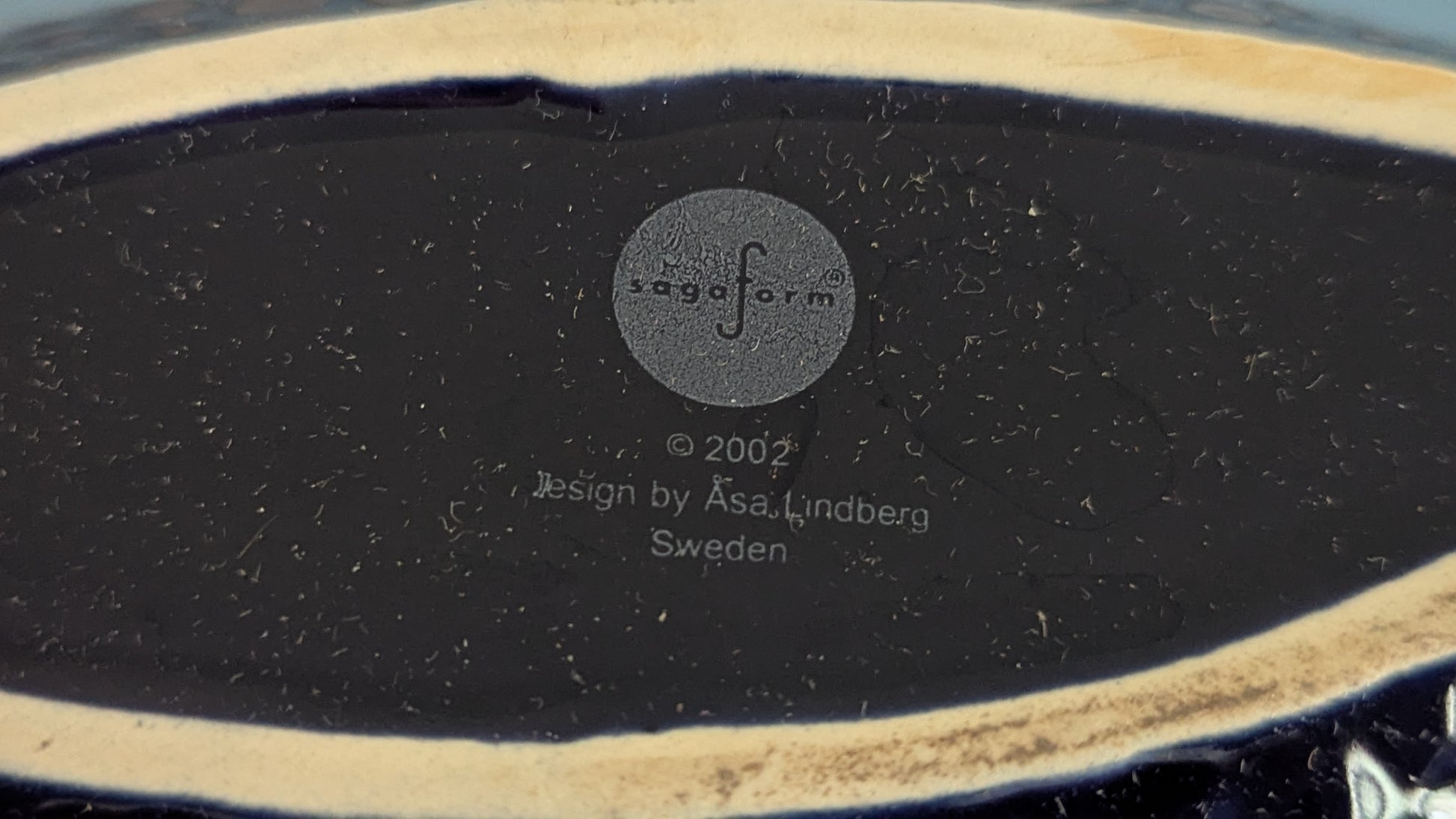 Kulhojen pohjassa Sagaformin leima, vuosiluku 2002 sekä teksti design Åsa Lindberg Sweden