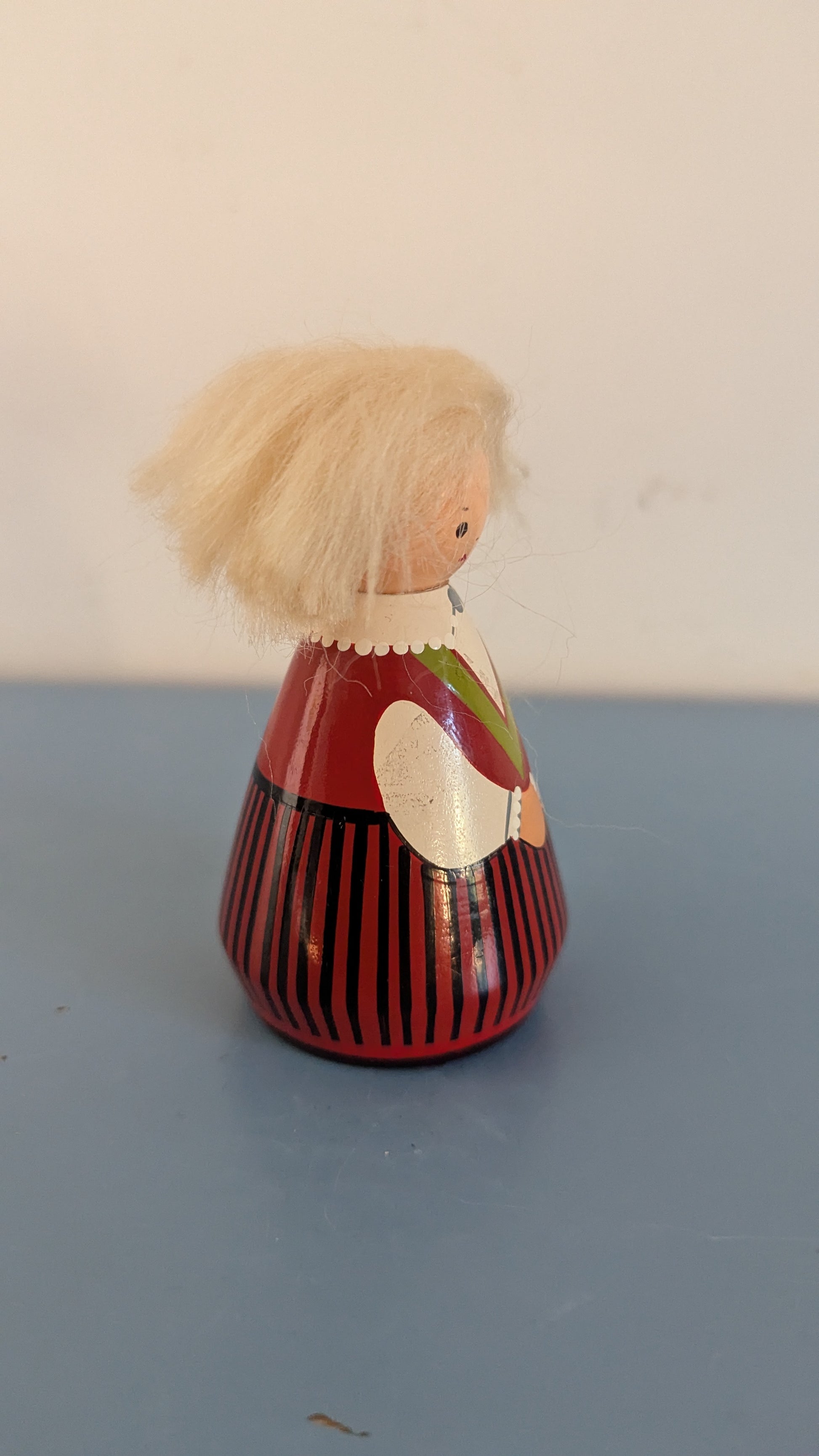 Pohjassa tarra Salvo Eesti Mustjala. En tiedä meinaako teksti että tämä on tehty Mustjalassa vai että onko naisen päällä oleva puku Mustjalan kansallispuku.