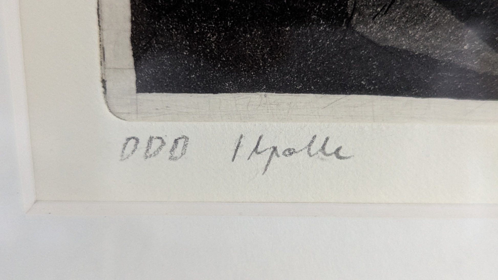Teoksen alla numerointi 000 ja teksti Ilpolle. Lisäksi teoksen nimi sekä taiteilijan signeeraus ja vuosiluku -97.