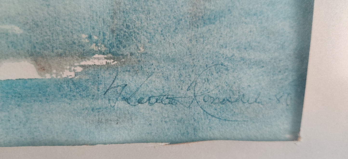 Signeerattu akvarellityö vuodelta 1980. Etunimi näyttäisi olevan Kerttu mutta sukunimestä en saa selvää.