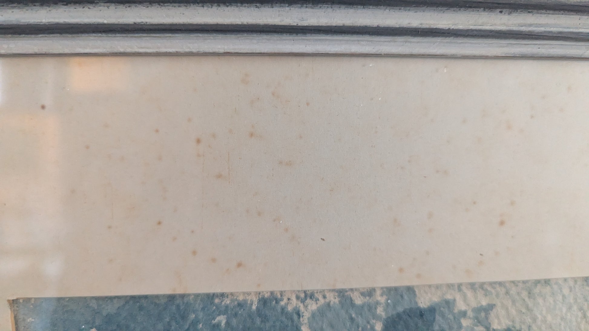 Kehyksissä lasi. Paspiksessa ruskeita pisteitä.
