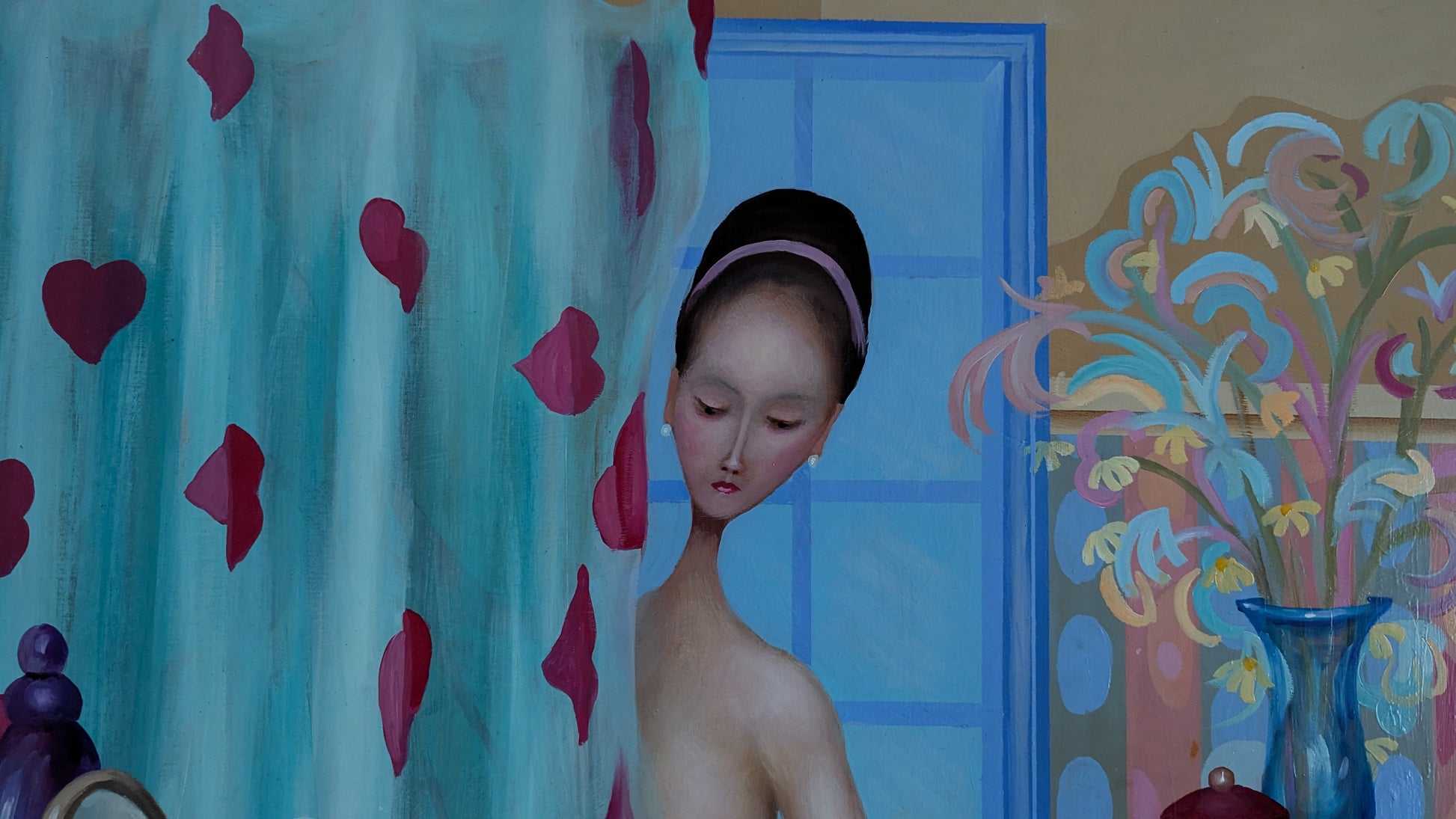 Signeerattu naivistinen öljyvärityö levylle.