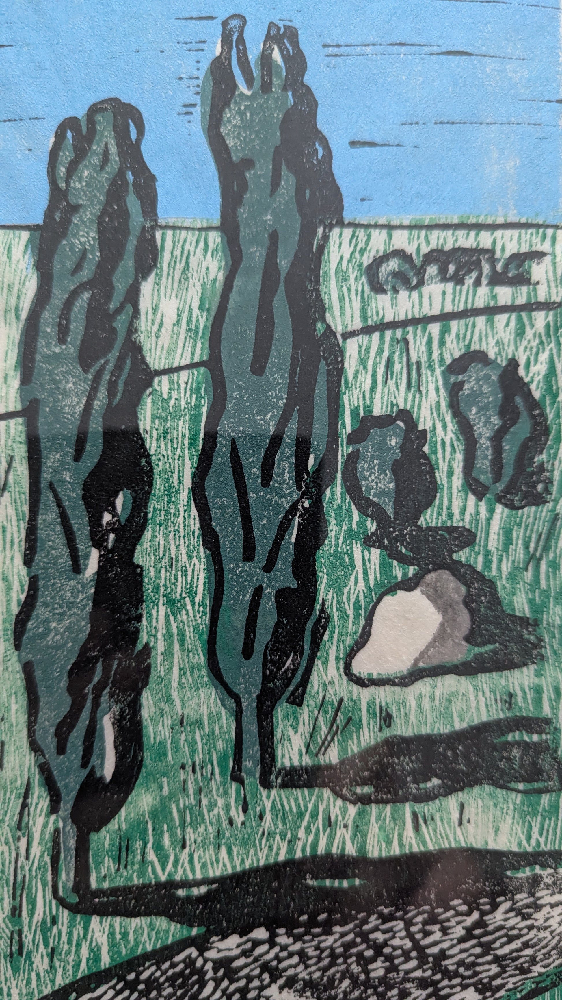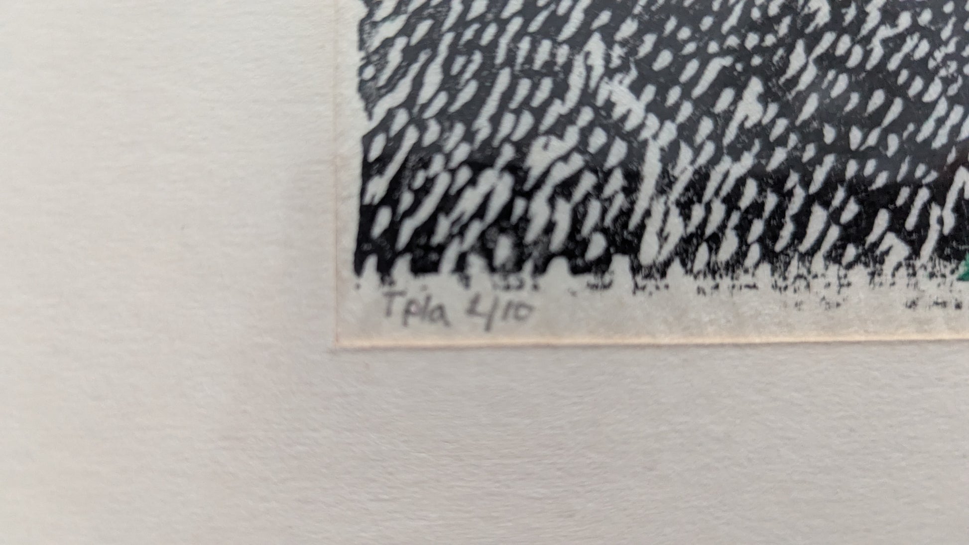 Teoksen alla merkintä tpl'a eli kyseessä taiteilijan itsensä tekemä vedos. Lisäksi numerointi 2/10 sekä taiteilijan signeeraus ja vuosiluku -83.