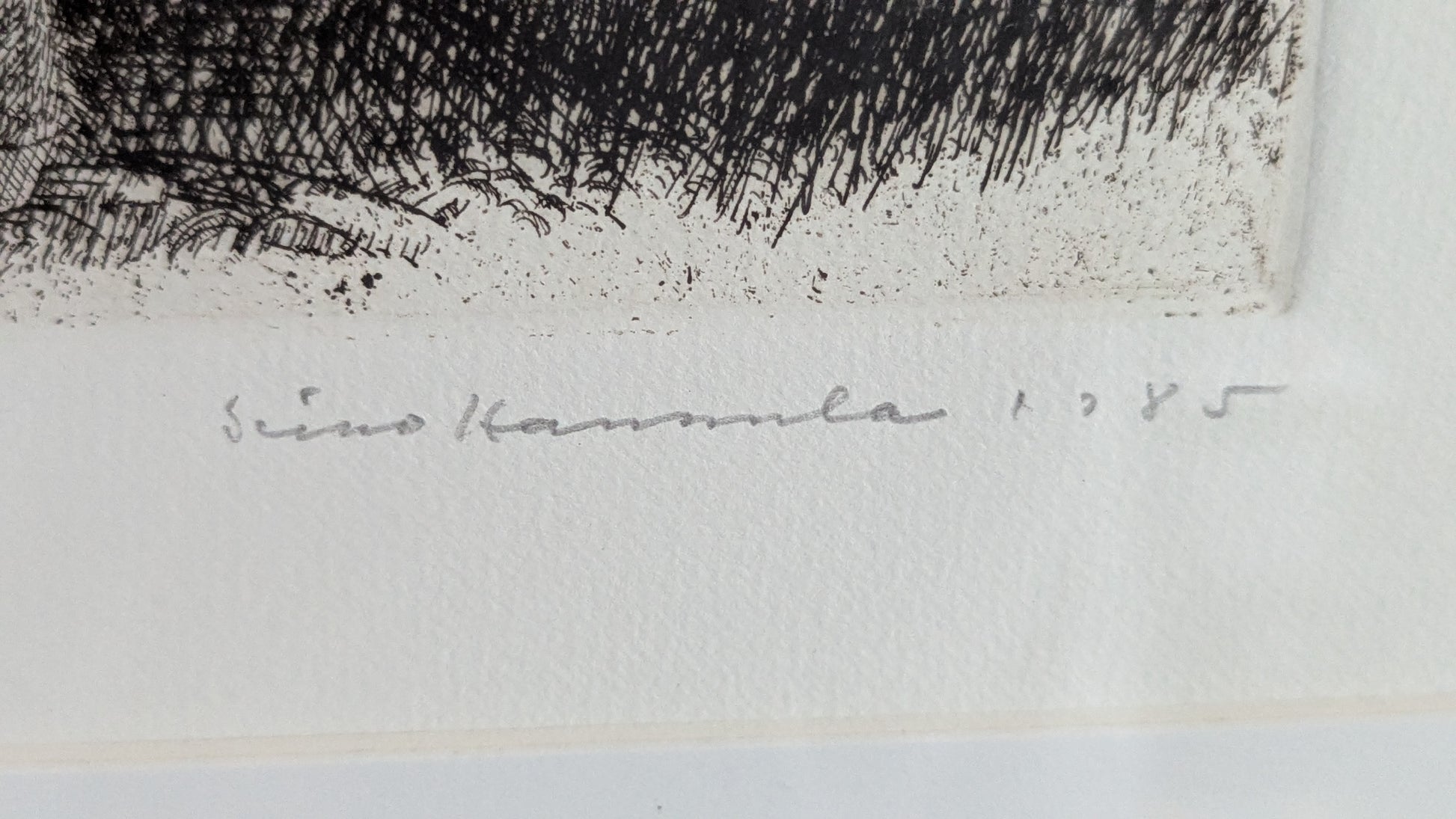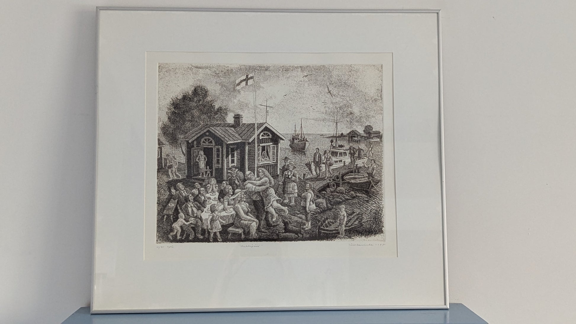Simo Hannulan signeeraama Merkkipäivä niminen etsaus vuodelta 1985.