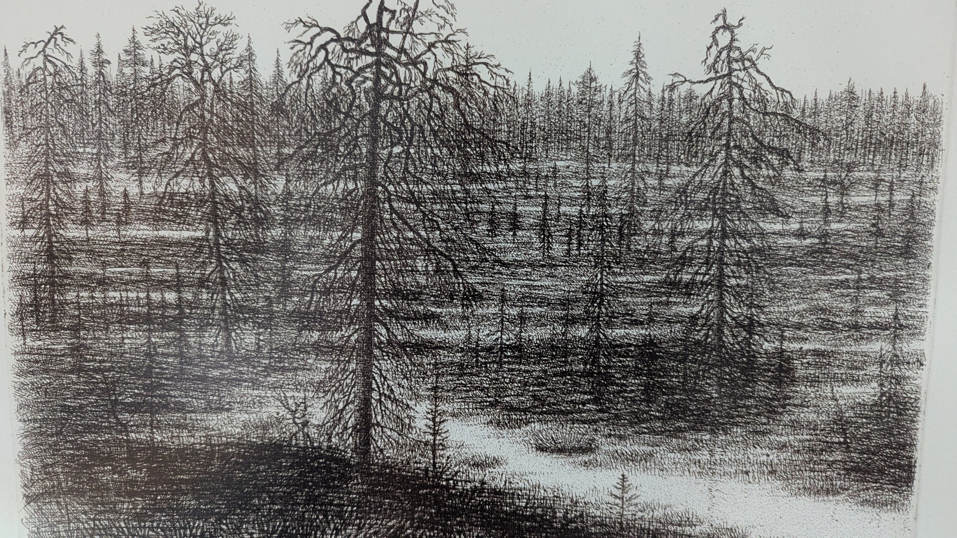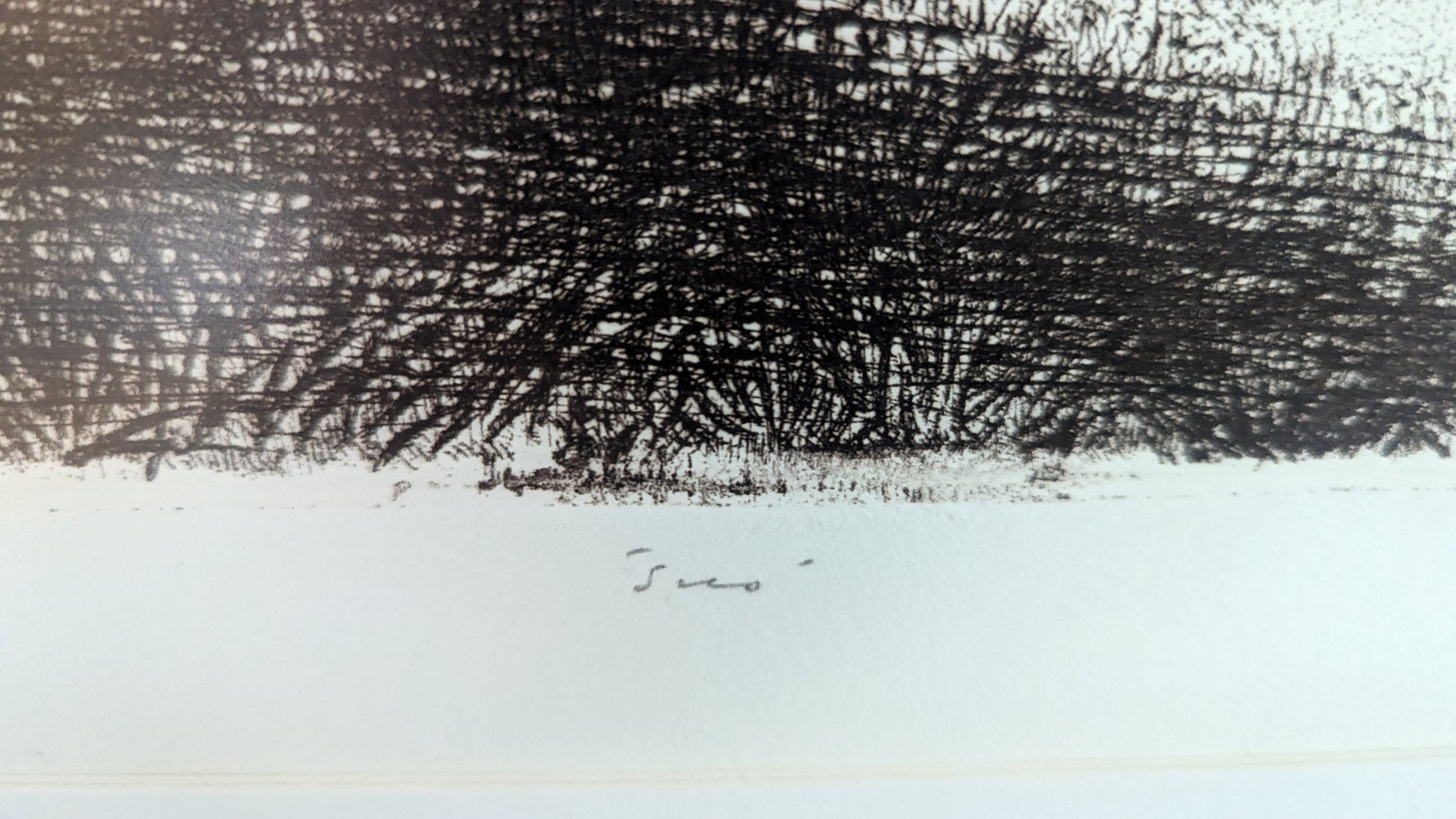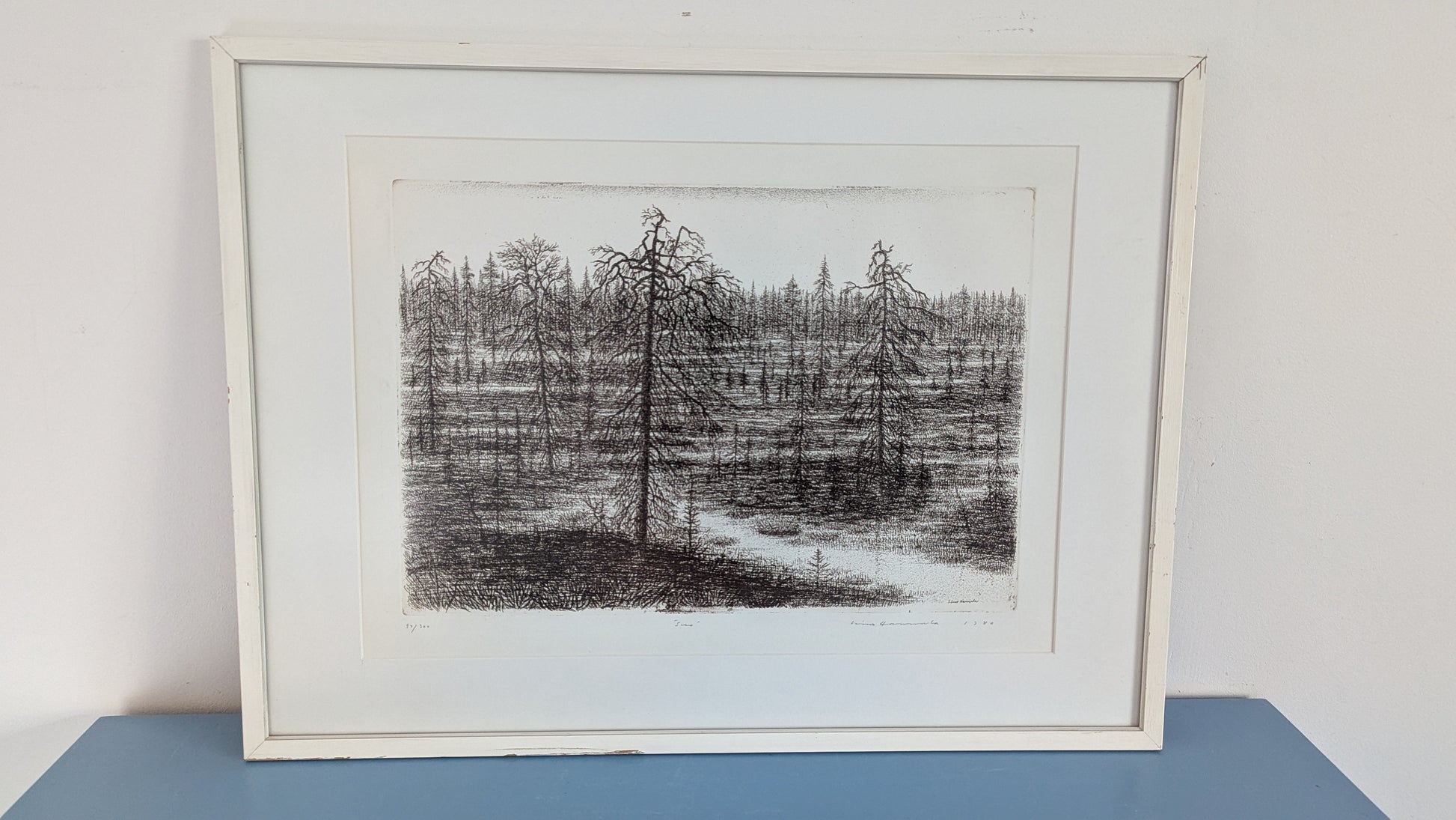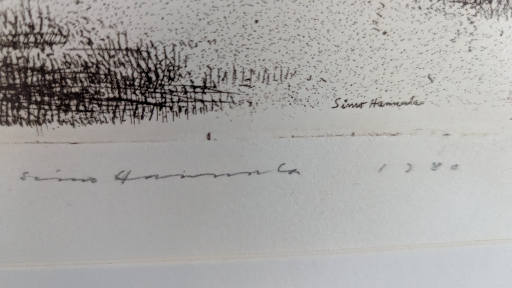 Simo Hannulan signeeraama Suo niminen etsaus vuodelta 1980.