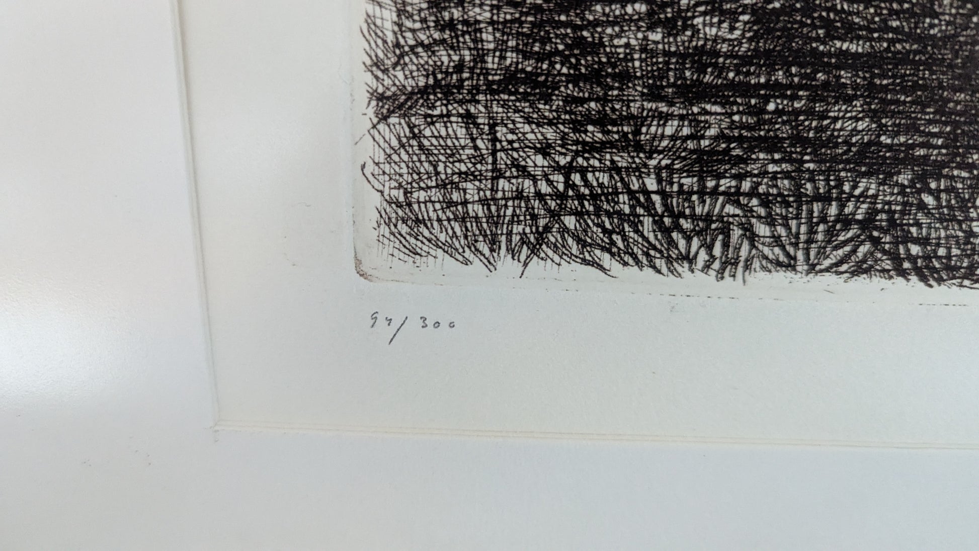 Teoksen alla vedosmerkintä Tpl'a eli kyseessä taiteilijan itsensä tekemä vedos, numerointi 94/300, teoksen nimi, taiteilijan signeeraus, ja vuosiluku 1980.