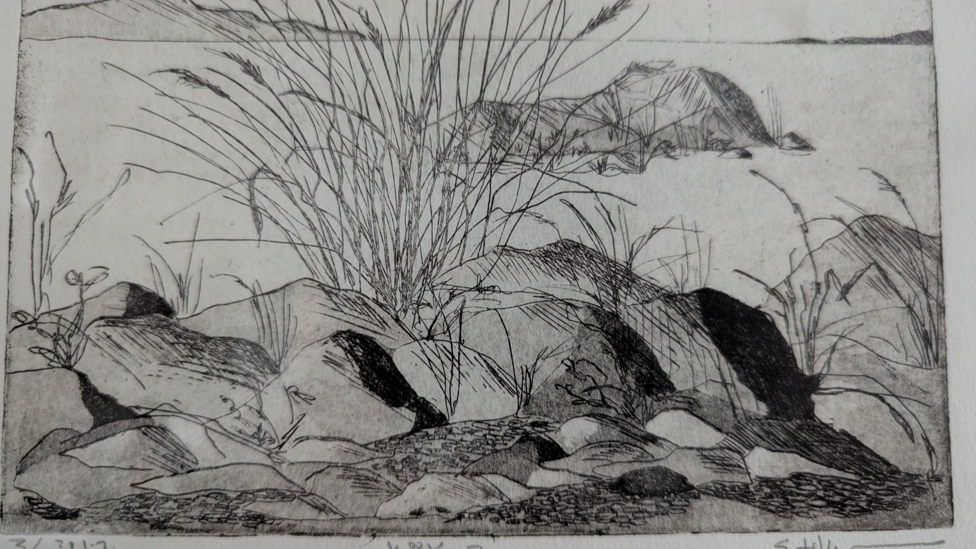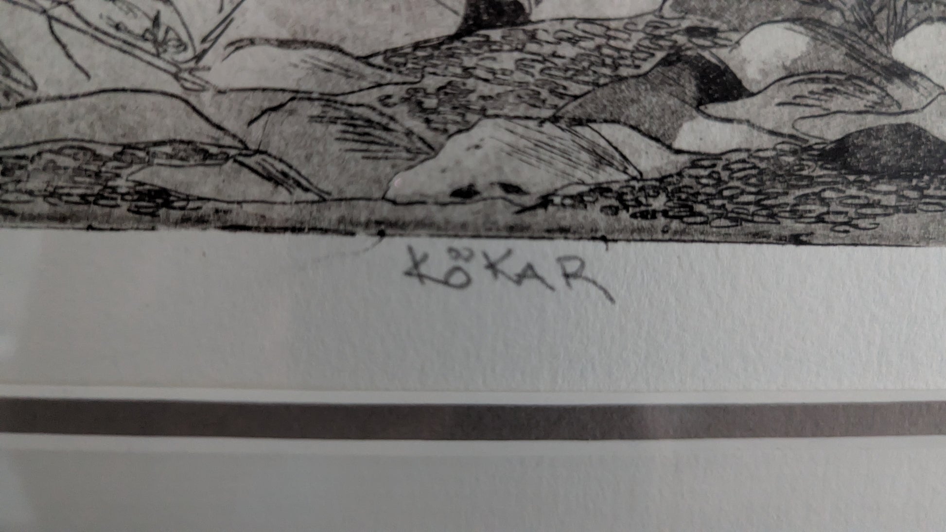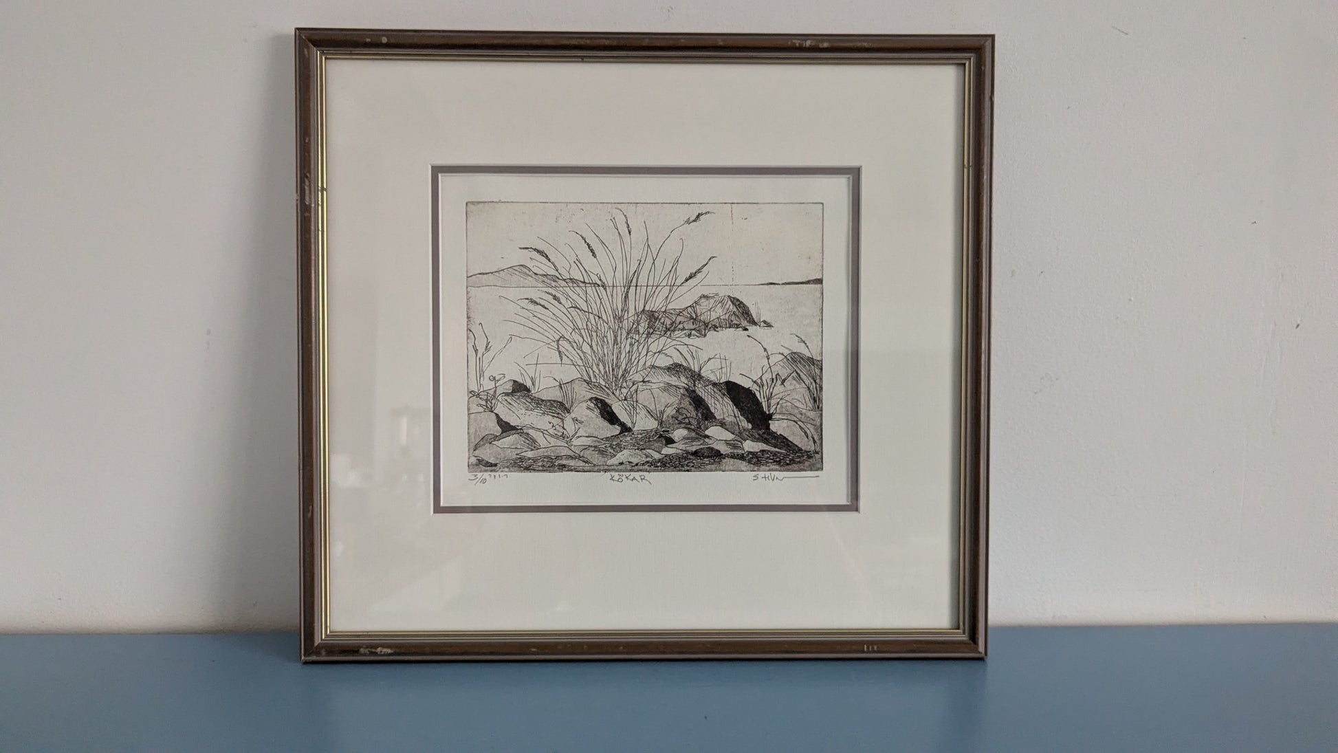Sirpa-Helena Viljasen signeeraama Kökar niminen grafiikka.