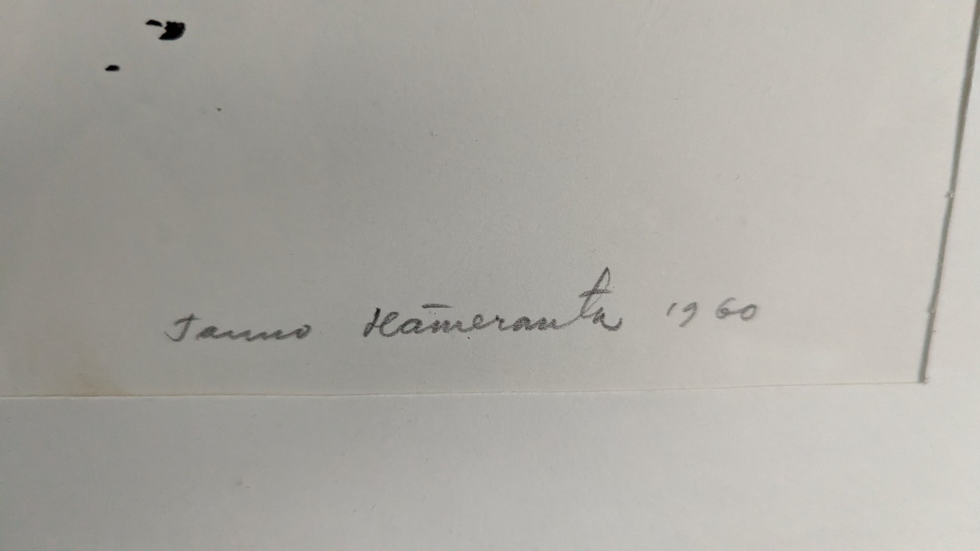 Teoksen alla numerointi 7/25, taiteilijan signeeraus ja vuosiluku 1960. Lisäksi teksti Seri: 1977
