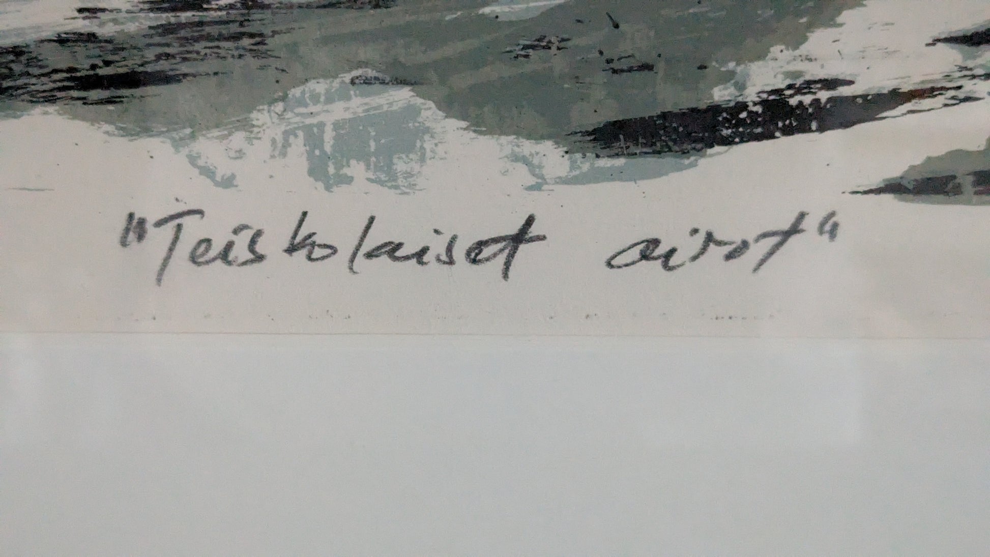 Teemu Saukkosen signeeraama Teiskolaiset Airot niminen grafiikka vuodelta 1989.