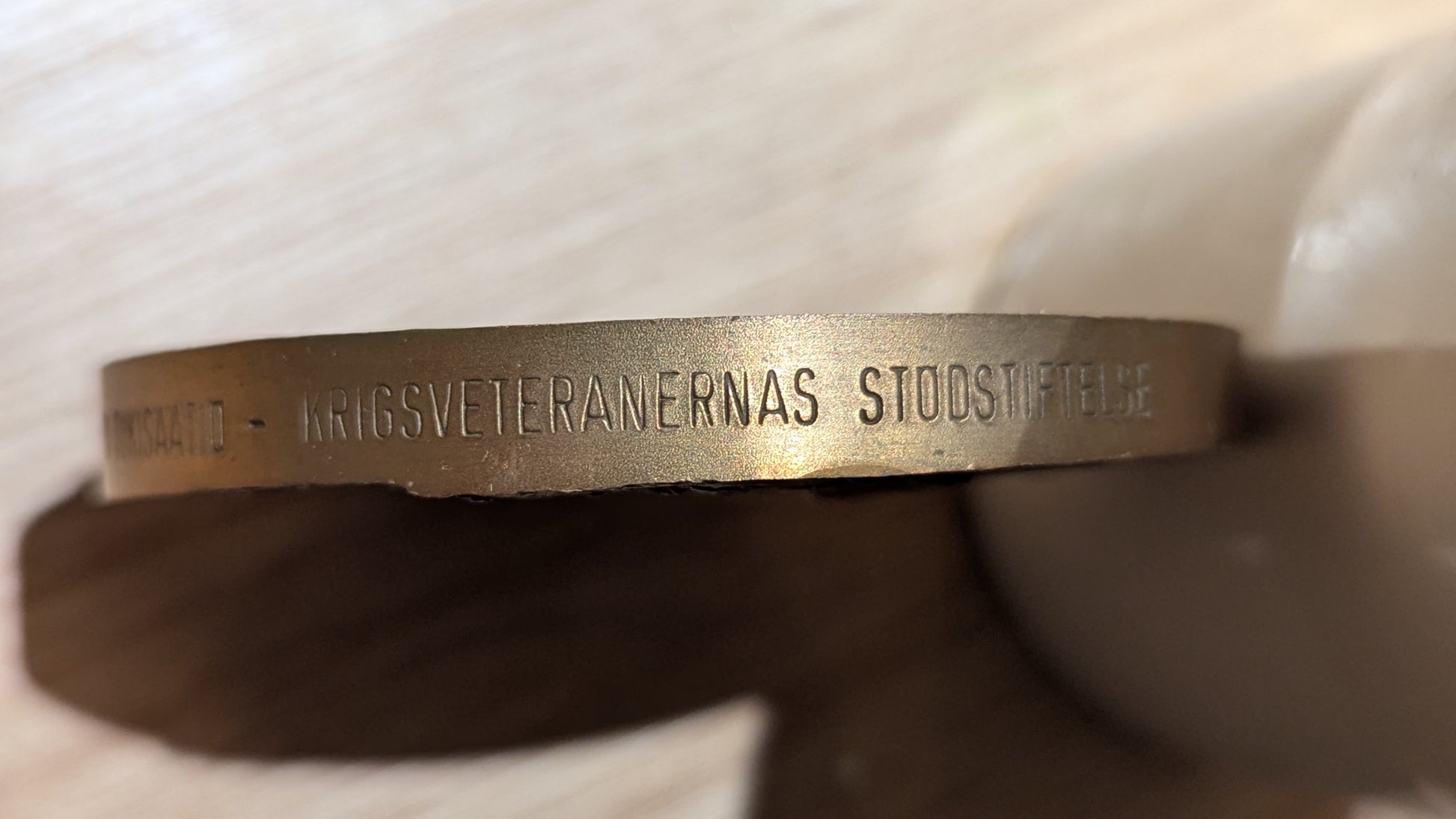 Etupuolella signeeraus TJ. Kääntöpuolella teksti Itsenäinen Suomi Finland självständigt LXX. Lappeella teksti Tillander ja Sotaveteraanien tukisäätiö - Krigsveteranernas stodstiftelse