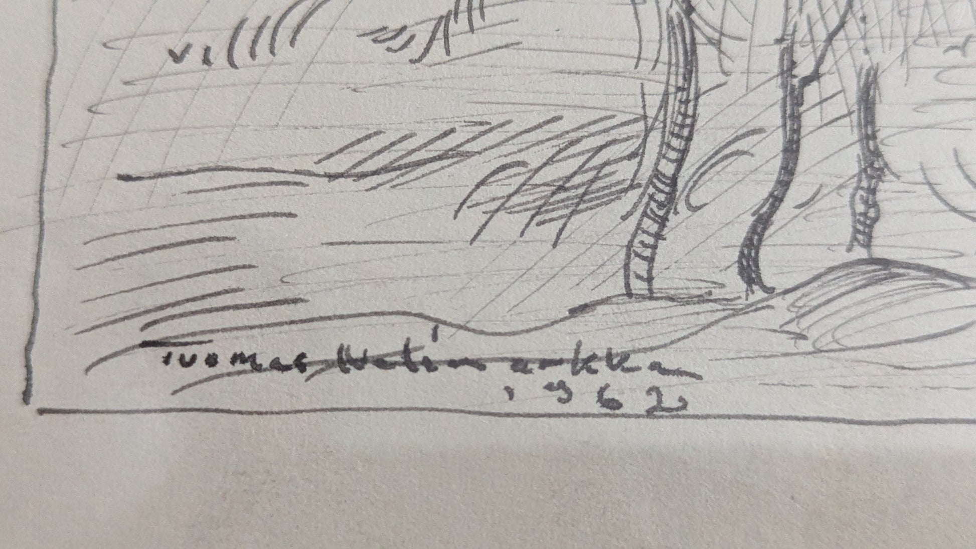 Tuomas Nelimarkan signeeraama tussityö vuodelta 1992