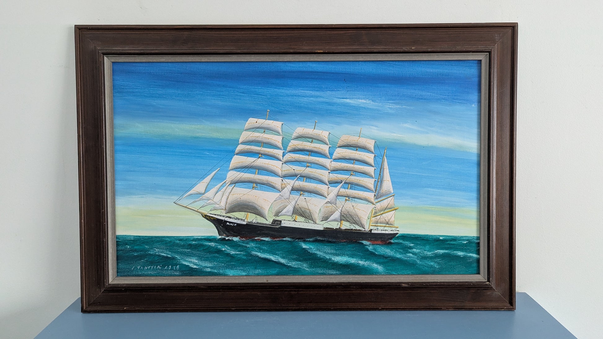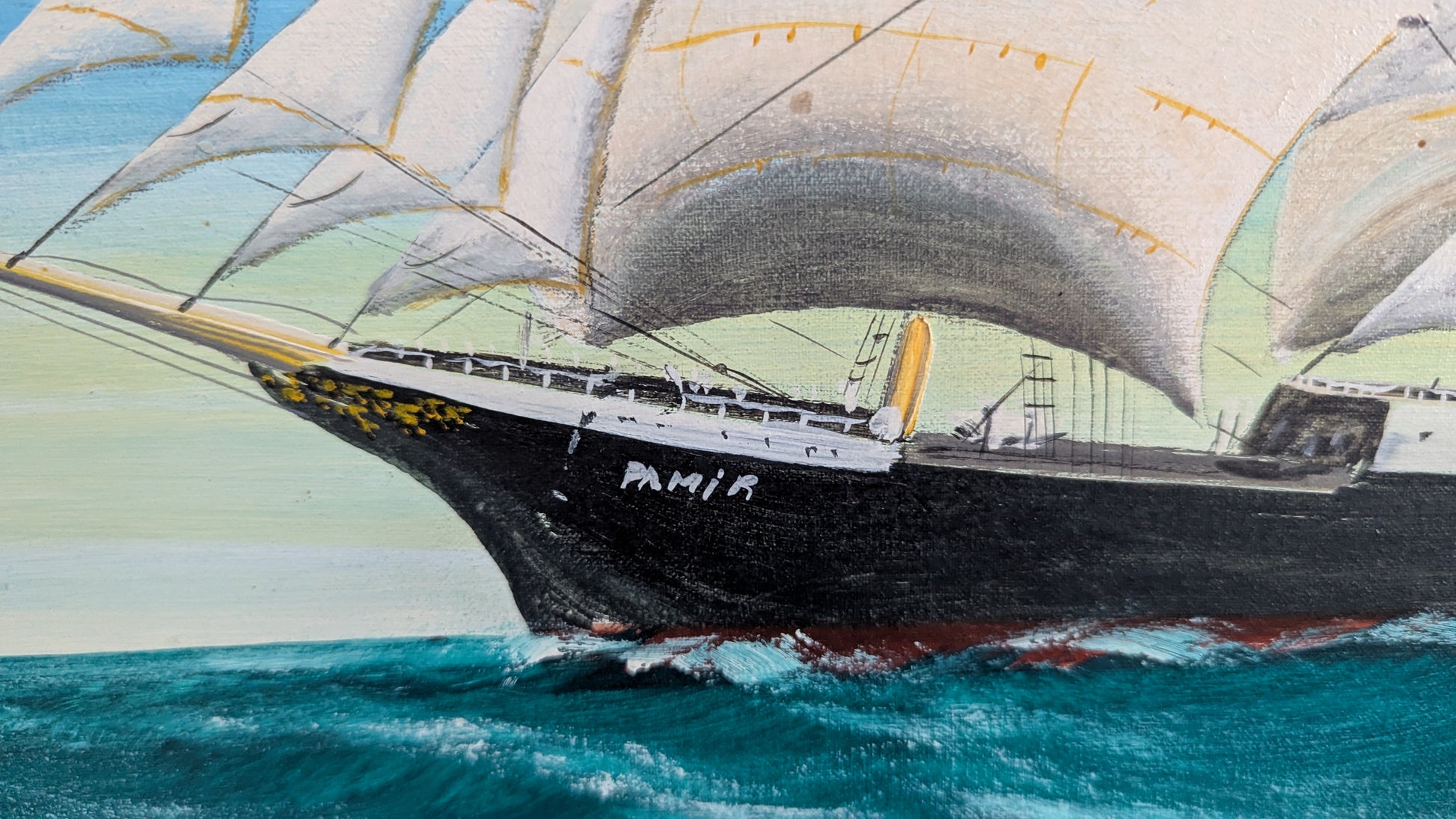 V. Tanttarin signeeraama öljyvärityö kankaalle vuodelta 1978. Teoksen aiheena Pamir niminen nelimastoinen parkki, joka rakennettiin Hampurissa Blohm Vossin telakalla vuonna 1905. Alus oli tarkoitettu Etelä-Amerikkan länsirannikolle salpietarikauppaan. Salpietarikaupan kannattavuuden heikennyttyä Parin myytiin ahvenanmaalaiselle laivanvarustajalle Gustaf Eriksonille vuonna 1931. Vuonna 1941 Pamir saapui Wellingtoniin, jossa Uusi-Seelanti valtasi sen, koska Suomea pidettiin vihollisen valtaamana alueena. Vuona 1948 laiva palautettiin Suomeen. Myöhemmin laiva toimi Saksan laivaston harjoitusaluksena.
