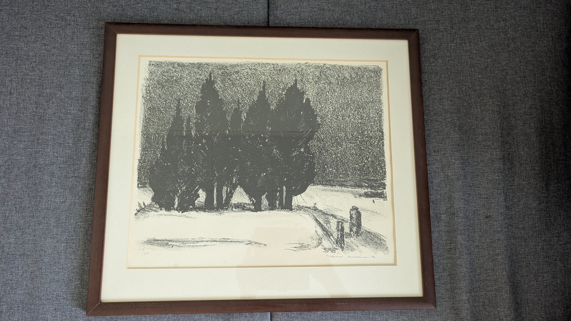 Väinö Rouvisen signeeraama etsaus vuodelta 1956.