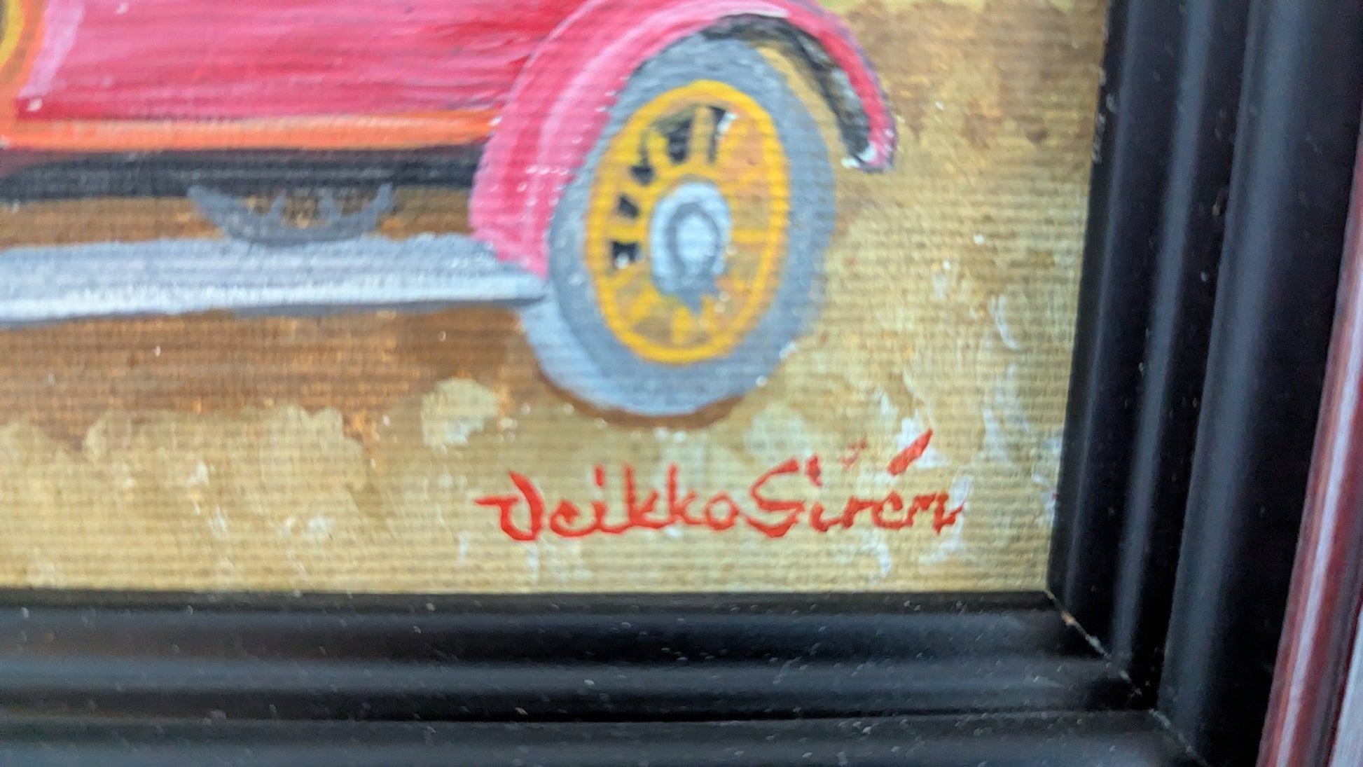 Veikko Sirenin signeeraama Delanhaye 1912 niminen öljyvärityö levylle.