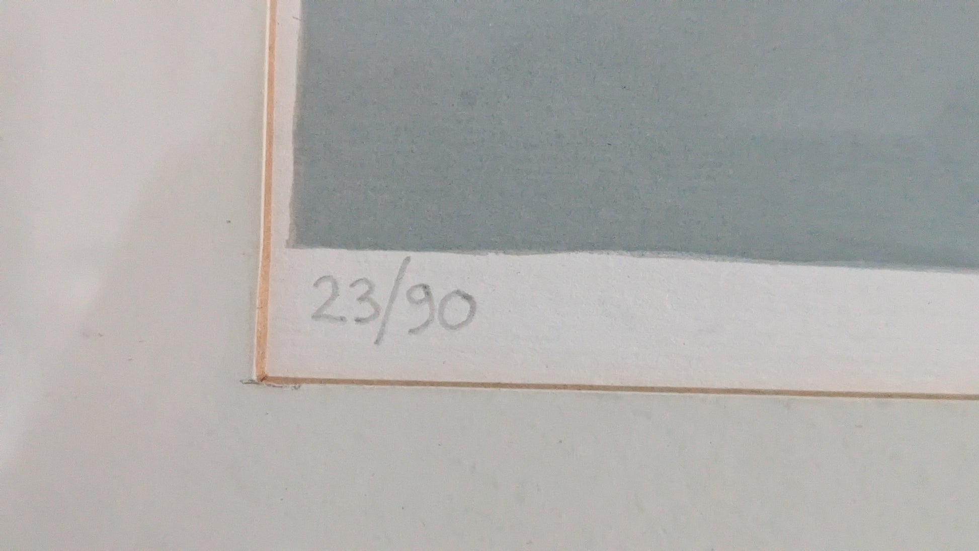 Teoksen alla numerointi 23/90 sekä signeeraus ja vuosiluku -81.